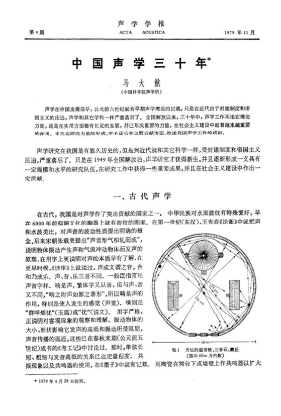 1979年11月,马大猷在《声学学报》上发表的综述文章。