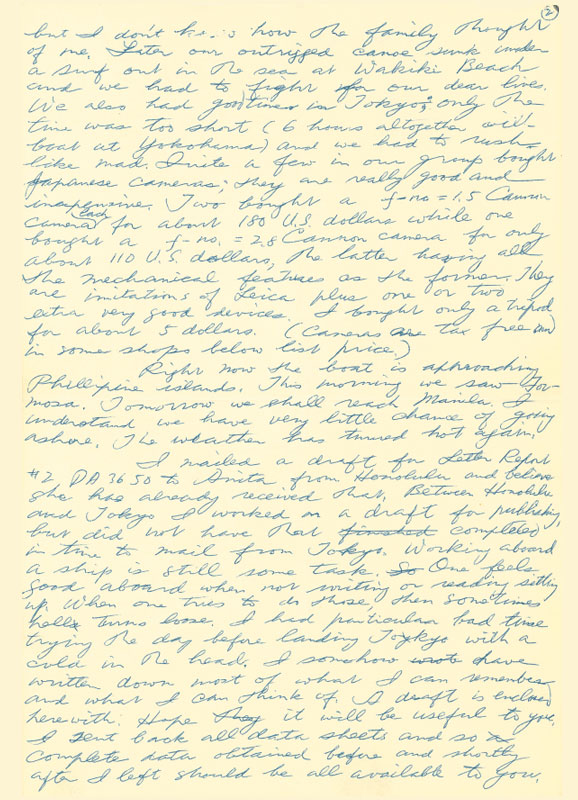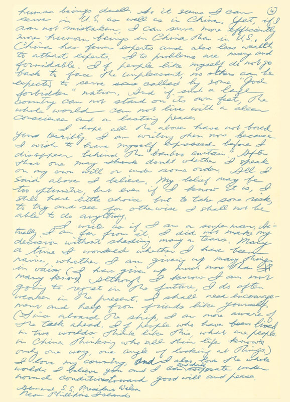 1955年12月,应崇福乘威尔逊总统号归国,这是轮船停靠在菲律宾群岛附近时写给导师丘尔先生的信。此信后来又重新回到应崇福手中,在写下此信的55年后,应崇福于2010年9月29日亲手将此信翻译成中文。
