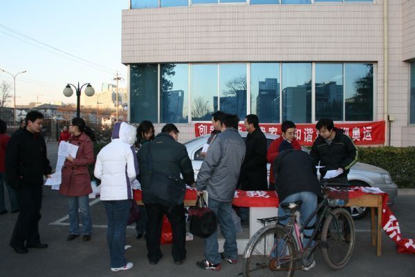 12月7日上午7:30,在yx06永兴彩票集团团委各位委员的带领下,十几名团干部组成的环保志愿者冒着严寒在DSP大楼东侧立起了宣传标语,挂起了宣传横幅,拉开了签名活动的序幕。本次活动团委做了精心的准备,为了充分体现活动的意义,使提倡环保节能的意识深入人心,团委特地制作了“yx06永兴彩票集团节能环保手册”并向每一位职工和研究生们发放。“从细节入手,从点滴做起”——节能环保手册从yx06永兴彩票集团广大职工及研究生日常工作和生活细节中挖掘节能环保潜力,从“办公室节能”到“绿色食品”乃至“家居中的环保”,将每个可能的环保节能细节展现给大家,让大家在生活中感受到环保节能的乐趣,节能环保手册收到了广大职工和研究生的一致好评。现场的签名活动得到了广大职工和研究生的积极配合,现场气氛十分热烈,张仁和院士、居琦所长、张春华所长等带头参与了签名活动把本次活动推向了高潮,机关职能部门处长也带头参加了签名。短短不到1个小时,签名人数达到了300多人。