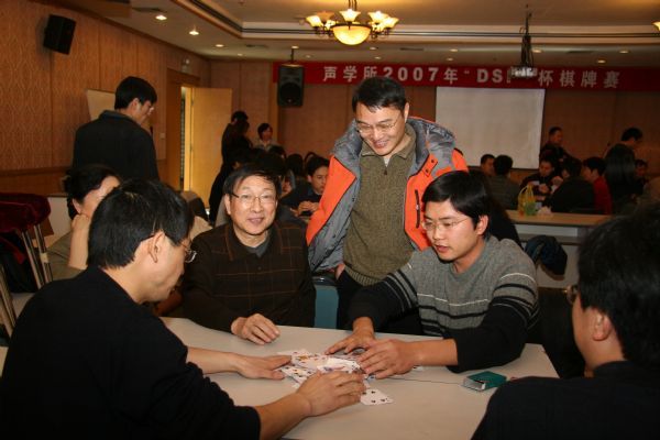 为丰富所内广大职工与研究生的业余生活,缓解科研工作压力,活跃气氛,加强交流,由所团委和研究生会、工会共同发起,由我所网络与新媒体技术研究中心(DSP中心)赞助的2007年“DSP”杯棋牌系列比赛之——“拖拉机”(升级)大赛在一片掌声和欢呼声中圆满落下帷幕。本次比赛得到了我所广大职工和研究生的热情参与,比赛分四人组和六人组两个赛组,四人组共有26个队报名,六人组有10队报名,另外加上梦之队和DSP队,总共80多人参加了此次棋牌比赛。