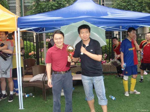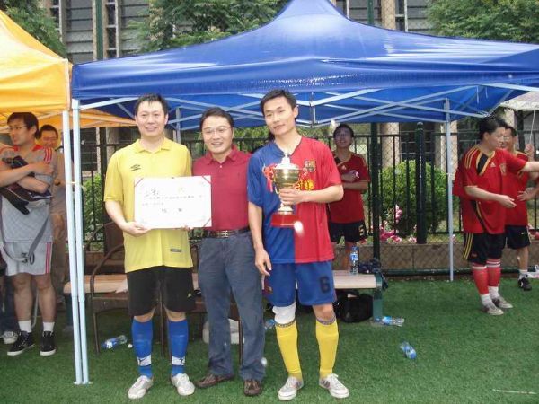 比赛结束以后进行了简短的颁奖典礼和闭幕仪式。首先由所工会主席倪宏为本次比赛的公平竞赛奖得主——重点室颁发奖杯,然后分别由重点室书记彭朝晖、所长助理易洪和所工会主席倪宏为季军机关联队、亚军噪声与振动实验室和冠军五部颁发了奖状和奖杯。颁奖结束后,重点室支部书记彭朝辉和工会主席倪宏分别发言。彭书记特别表扬了在本届比赛中各支球队表现出的友谊第一比赛第二、重在参与的精神,同时希望通过这次比赛能为大家提供一个多进行体育锻炼的契机。倪宏主席则对获奖球队表示了祝贺,同时对参赛的队员、赛事的组织者和工作人员以及现场的啦啦队表示了感谢,感谢他们为我们奉献了这次精彩的“所庆杯”足球比赛。最后,随着倪宏主席宣布正式闭幕,本次“所庆杯”足球比赛在一片掌声之中圆满结束。