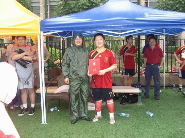 5月21日下午,“所庆杯”足球比赛的决赛如期在中关村体育场举行。虽然比赛前天空下起了雨,但是这点小雨一点也没有浇灭广大师生关注“所庆杯”决赛的热情。赛前就有大批的啦啦队到达比赛场地,现场的工作人员还很细心地为大家支起了挡雨的帐篷。