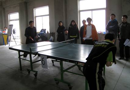 在之前的抽签中我所与物理所、电工所、材料学院联队抽到第六组。物理所水平一贯出色,电工所实力也不容小觑,我所小组出线的压力还是很大。9:00比赛正式开始,我所首先对阵物理所。第一局男单比赛由夏金东老师上阵,但由于前一天休息不好一上来就陷入被动,开局以1:4落后,夏老师及时调整状态,一度将比分迫近至6比8,但关键时刻对方下手果断以11比7先胜一局。接下来的比赛中,夏老师始终没有调整到最佳状态,饮恨败北。