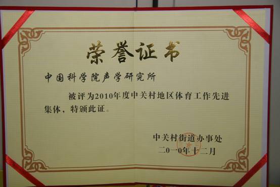 近日,中关村街道对在2010年度体育工作中表现突出的个人和集体进行了集中表彰,yx06永兴彩票集团被评为2010年度中关村地区体育工作先进集体。