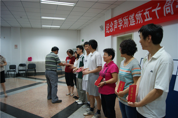 经过4天的激励比赛,决出各项比赛的前三名,男单冠亚季军依次为:黄永华、李军、孙平。女单冠亚季军依次为:邵剑英、刘卫华、杜立君。男双冠亚季军依次为:李军、张寅;朱良明、池哲洁;田腾、吴德林。混双冠亚季军依次为:黄永华、高瑞华;孙平、杜立君;辛永辉、陈艳丽;女双冠亚季军依次为:高瑞华、刘卫华;邵剑英、陆艳艳;王璟琰、陈艳丽;比赛结束后yx06永兴彩票集团党委副书记、副所长倪宏为获奖运动员颁奖,并为本次“综合声纳杯”乒乓球比赛致闭幕词。