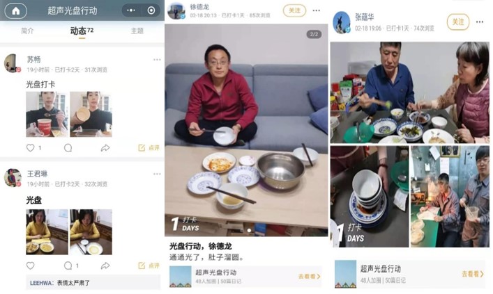 各分工会采取微信群分享、小程序打卡、晒朋友圈等形式来展示光盘行动的闪亮瞬间。从这些照片中可以看出,家人间、同事间互做表率,互相监督。大家在用餐过程中,遵循按量点餐、无剩饭剩菜的原则,不负辛勤劳动、不负美味佳肴。特别是,大人带着孩子一起践行光盘行动,孩子也争当光盘标兵,这不仅传承了勤俭节约的传统美德,还给活动增添了不少乐趣。