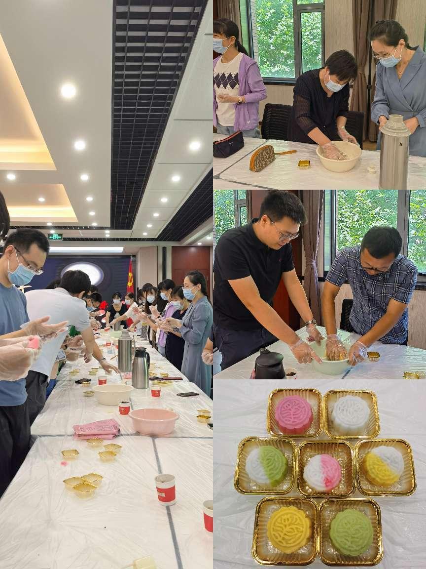 中秋节是中华民族的传统节日,做月饼、吃月饼更是中秋节必不可少的一项活动,圆圆的月饼诠释着每个人心中的美好追求与对团圆的梦想。做月饼活动在欢快的节日乐曲中开始,大家纷纷摩拳擦掌,做月饼的画扇子的,各施所长。做月饼的开始和面,画扇子的开始调色,活动现场气氛热烈浓厚。男同志们也不甘落后,和面、包月饼、画扇子样样在行。制作的冰皮月饼味道不同于传统需要烤制的月饼,做好的月饼可以直接入口,大家还互相将自己亲手制作的月饼与同事分享,一边品尝着甜蜜的月饼,一边感受着劳动的快乐,更是别有一番滋味。