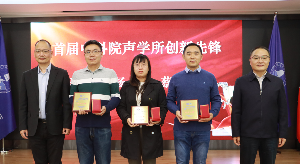 李风华、倪宏为创新先锋颁奖(左二起:蔡昊鹏、杨娟、吴金荣)