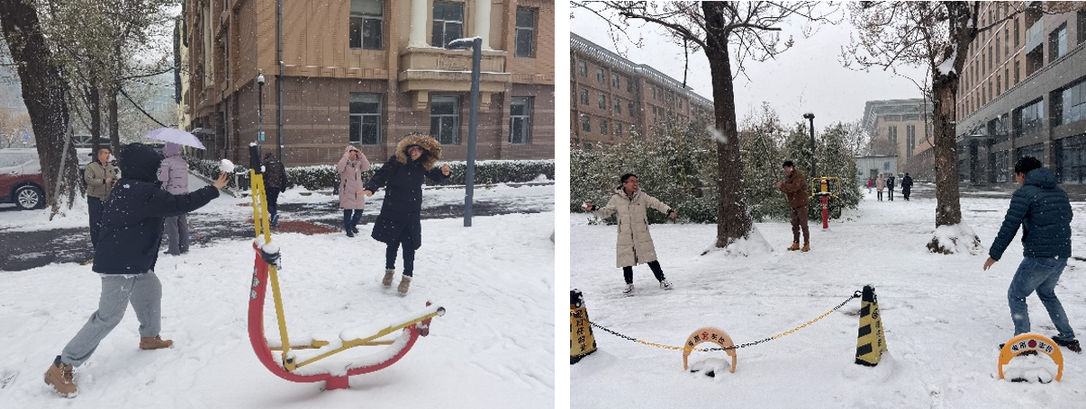 智能网络实验室的职工们趁着午休也沉浸在雪景中,他们有的打雪仗,有的互相帮忙给汽车铲雪,有的做起了可爱的雪雕,还有职工用脚在雪地上“画出”IACAS的字样,大家享受着冬日里的欢乐时光,欢声笑语回荡在整个园区。
