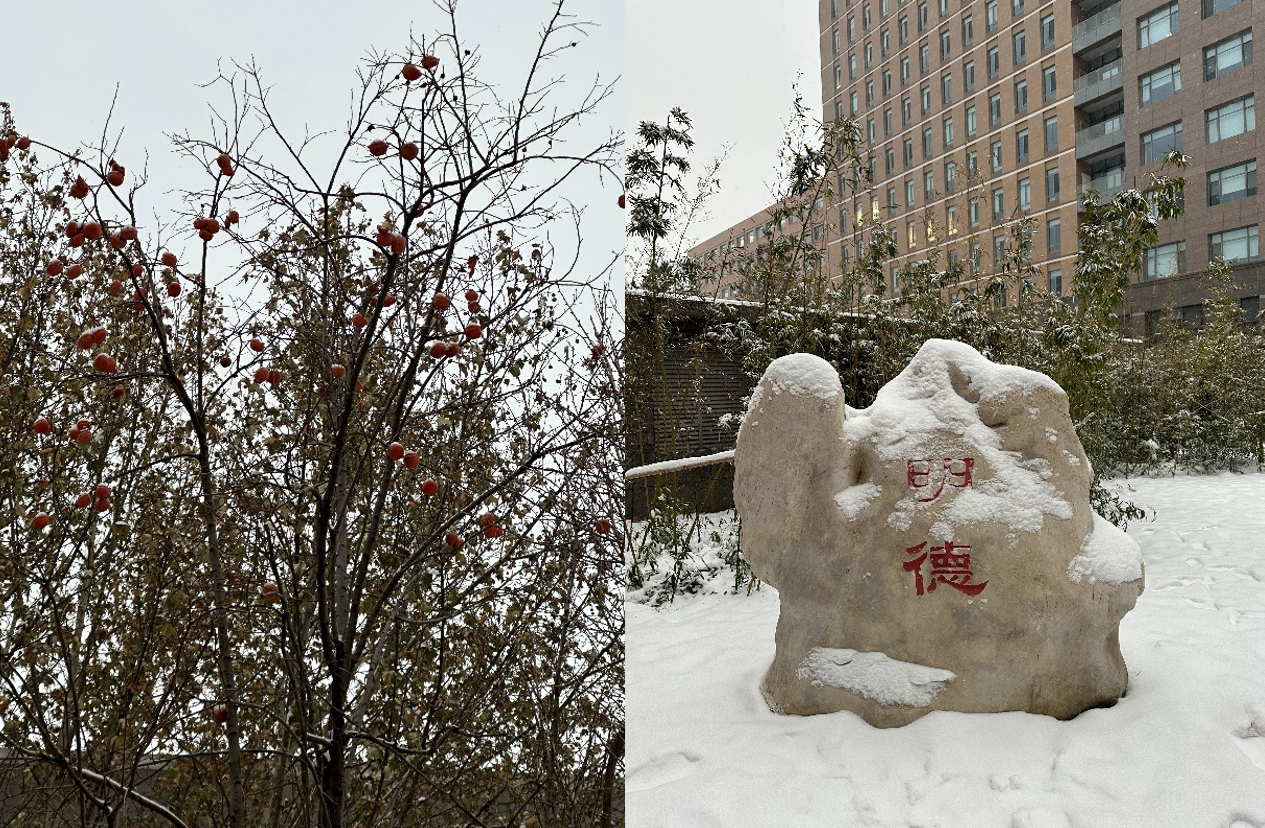 2021年的冬季的初雪来的早一些,yx06永兴彩票集团园区内,树木的枝桠透过稀疏的积雪可以清晰可见。那时的雪景如诗如画,静谧的氛围让人不禁放慢脚步,去欣赏每一个细节,去感受雪花带来的那份宁静和清新。研究所的红色标志在洁白的世界中格外显眼,犹如一个温暖的焦点,提醒人们这里是知识与创新的沃土。