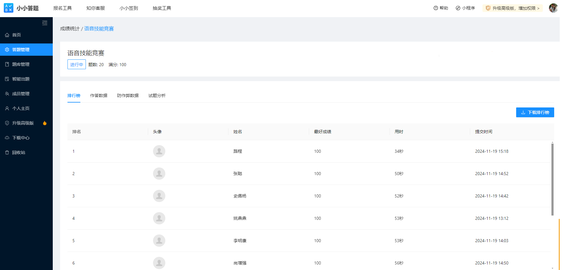 语音与智能信息处理实验室分工会于2024年11月19日~2024年11月26日成功举办了一次语音技能竞赛,活动采取线上答题的形式,使得出差和在岗的员工们都能积极的参与进来。