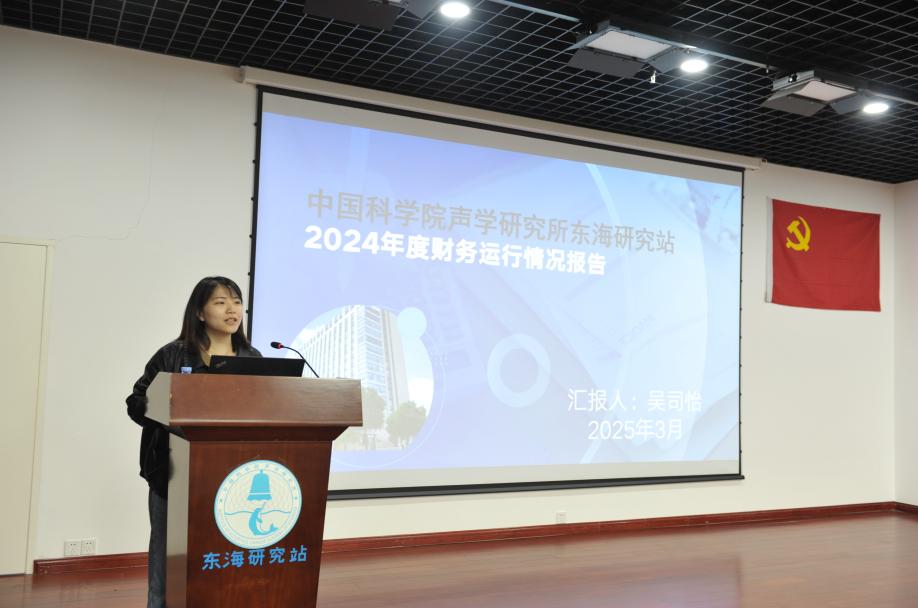 党委书记、站长许伟杰首先传达了中国科学院及声学研究所2025年度工作会议精神并作东海站2024年度工作报告。2024年,东海站以习近平新时代中国特色社会主义思想为指导,深入学习贯彻党的二十大和二十届二中、三中全会精神,持续推进党纪学习教育常态化长效化,紧紧围绕抢占科技制高点核心任务和“登攀2024”工作主题,以钉钉子精神奋力推动研究站改革创新发展走深走实,在重大项目争取、党建与科研深度融合、人才引留培体系建设、创新文化生态构建等方面取得新成效,研究站各项事业稳步发展。他强调,全站职工要以高度的使命感责任感紧迫感,聚精会神抓攻坚,雷厉风行抓改革,锲而不舍抓落实,统筹推进2025年度各项工作落实落细,确保高质量完成“十四五”目标任务,系统谋划“十五五”创新发展,全力以赴抢占科技制高点,为加快实现高水平科技自立自强和建设科技强国作出更大贡献。