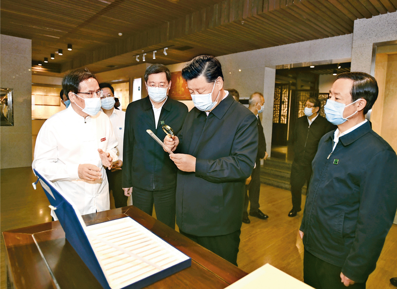 2020年9月16日至18日,中共中央总书记、国家主席、中央军委主席习近平在湖南考察。这是17日下午,习近平在湖南大学岳麓书院考察调研,了解人才培养、文化传承等情况。新华社记者 谢环驰/摄