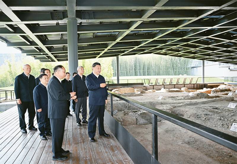 2023年10月10日至13日,中共中央总书记、国家主席、中央军委主席习近平在江西考察。这是11日上午,习近平在景德镇市陶阳里历史文化街区南麓遗址考察。 新华社记者 谢环驰/摄