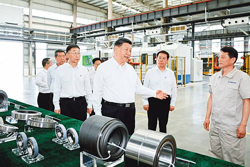 2025年5月19日至20日,中共中央总书记、国家主席、中央军委主席习近平在河南考察。这是19日下午,习近平在洛阳轴承集团股份有限公司智能工厂考察。 新华社记者 谢环驰/摄