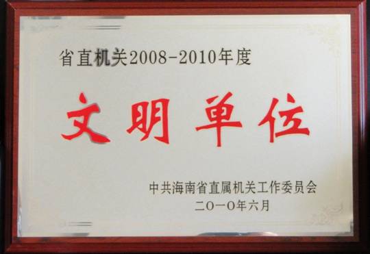 yx06永兴彩票集团南海研究站荣获海南省直机关工委2008—2010年度文明单位称号