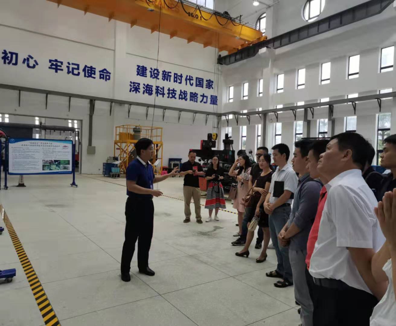 活动分为两个阶段,第一阶段是现场观摩。代亮同志和发强同志带领大家来到工程实验室和大型超高压模拟实验室厂房,结合深海装备、深海勇士号和展板现场讲解了深海所概况、平台建设、项目开展和海上科考情况。随后大家观看了深渊科考纪实片、蛙人视频短片。