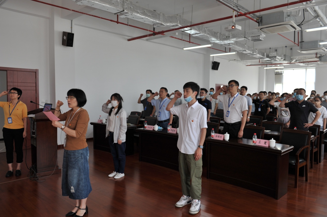 会上,全体党员进行了重温入党誓词仪式。副站长、党委委员刘晓隽带领全体党员面向党旗,举起右拳,庄严宣誓,表达了广大党员不忘初心、牢记使命,永远忠于党、忠于祖国的坚定信念。