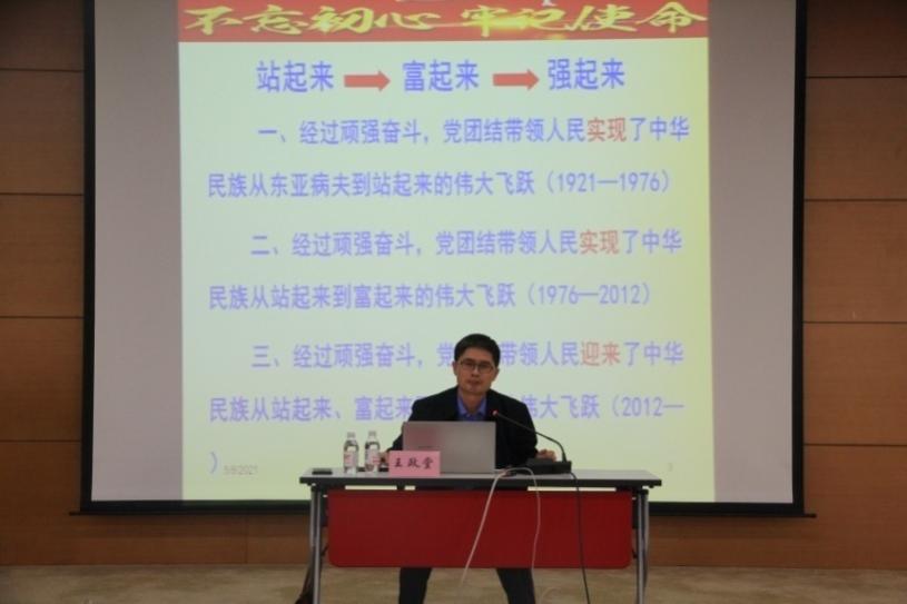 2021年5月8日,北海研究站组织召开党史学习教育专题报告会,青岛市委党校党史党建部副主任王政堂教授应邀作了专题辅导报告,站领导、在职党员及部分职工参加培训。站党委书记安俊英主持报告会。