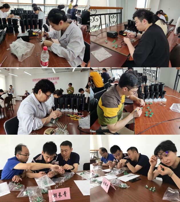 首先是投弃式温深探头的接头焊接赛段。该种接头的焊接质量和一致性在一定程度上影响着投弃式温深探头测量的精确性和一致性,因此要求职工在焊接的过程中,保证元器件安装正确、焊接光滑、无毛刺、无虚焊、无焊流。比赛要求参赛选手在保证质量的前提下,尽量快速完成10组接头的焊接,由裁判计时。完成后,将赛品匿名编号,由评委检查焊接质量,打出质量分数。焊接组比赛排名根据时间分数和质量分数综合评定。