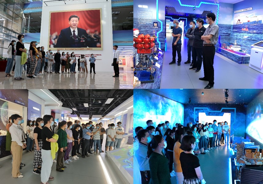 展览参观过程中,大家看到“面向国家重大需求”模块展出的我所参与研制的“蛟龙”号、“深海勇士”号、“奋斗者”号载人深水器、港珠澳大桥中应用的超声波成孔成槽质量检测仪等创新成果,以及“面向世界科技前沿”模块展出的超声学实验室参与研究的“深地探测装备”成果,尤为感到骄傲和自豪。