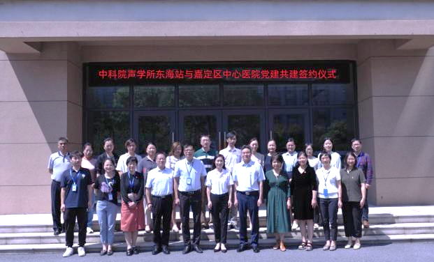 2022年8月4日,yx06永兴彩票集团东海研究站与上海市嘉定区中心医院举行党建共建签约仪式暨首期“医声说”青年学术交流会。区科委科协党组书记徐慧,党组成员、科协主席万刚,区卫健委副主任褚文革,嘉定区中心医院党委书记谢岳林、副院长曹励欧,声学研究所东海研究站站长许伟杰,副站长刘晓隽,党委副书记、纪委书记丁培以及双方相关部门负责人等参会。会议由丁培主持。