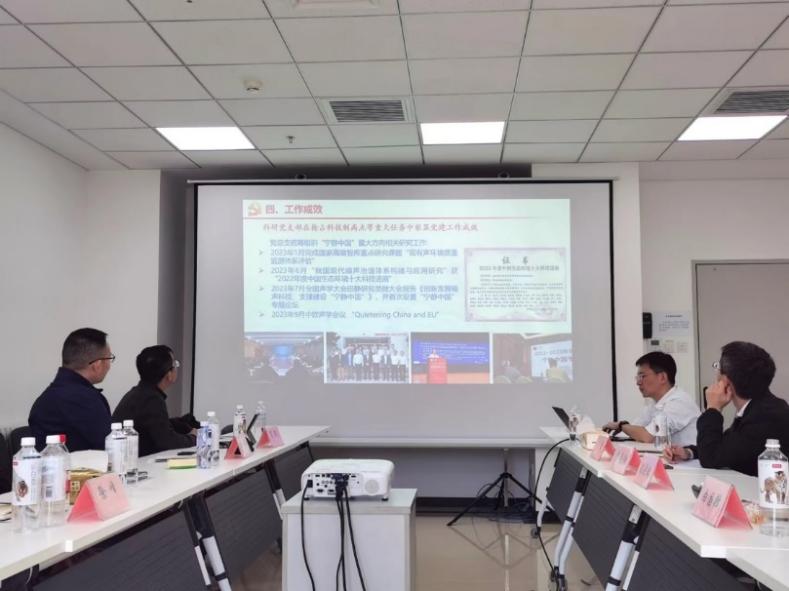 管鲁阳介绍了噪声与音频声学党总支情况,重点围绕抢占科技制高点、“减振降噪”项目攻关突击队、“宁静中国”香山科学会议、科研诚信建设、弘扬科学家精神等方面,聚焦基层党组织建设、科研项目管理、重大科研任务攻关等方面发挥的重要作用开展交流。