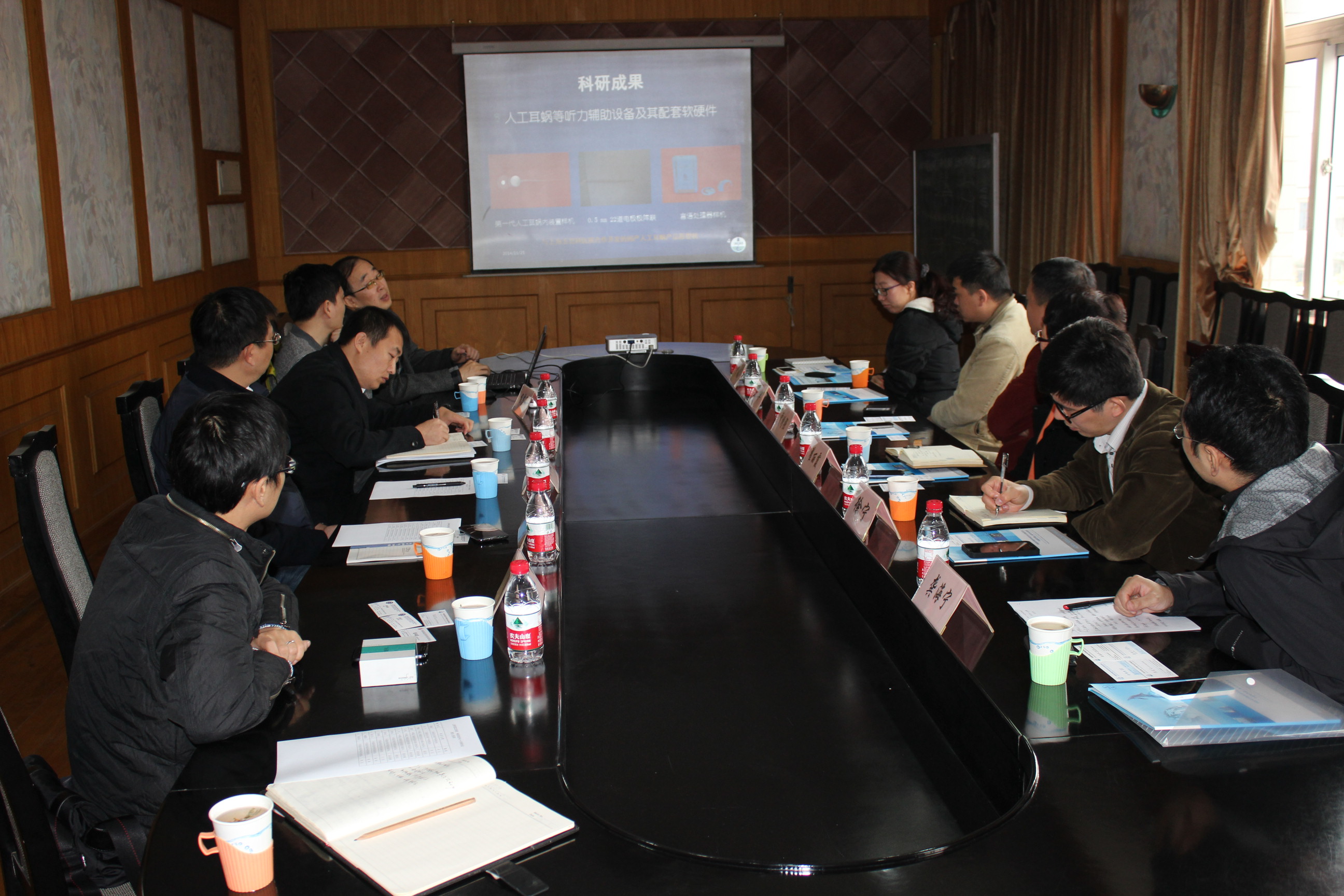 调研会上,许伟杰对嘉定区科委、育成中心一行的到来表示欢迎,并对嘉定区科委长期以来对我站工作的支持表示了感谢。张伟才从单位基本情况、科研创新能力建设、院地合作以及园区建设等多个方面介绍了yx06永兴彩票集团东海站概况,重点就我站在超声应用、医疗声学技术领域产业化等方面所做的工作向调研组一行做了简要介绍。同时,冯海泓就人工耳蜗、助听器两个产业化项目的开展情况同调研组进行了深入的交流。