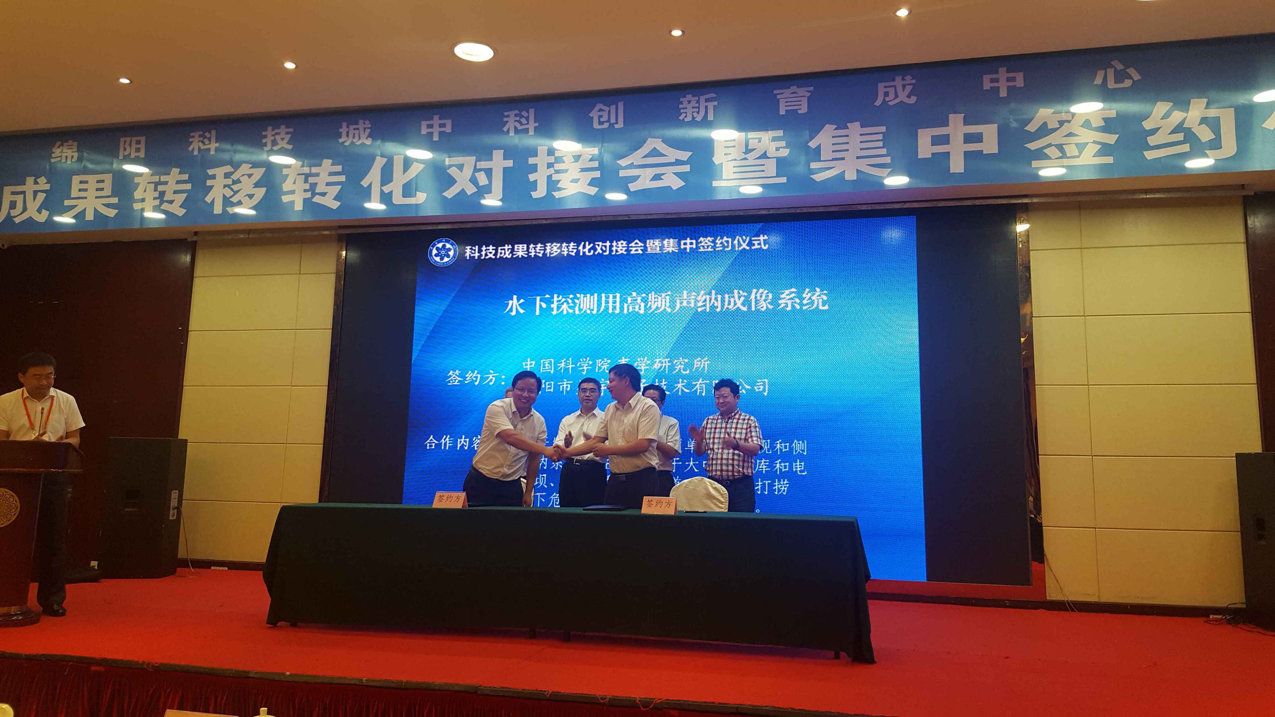 科博会期间,yx06永兴彩票集团与绵阳星宇电子技术有限公司前期谈签的 “水下探测用高频声呐成像系统”项目在科技成果转移转化对接会上参加了集中签字仪式。