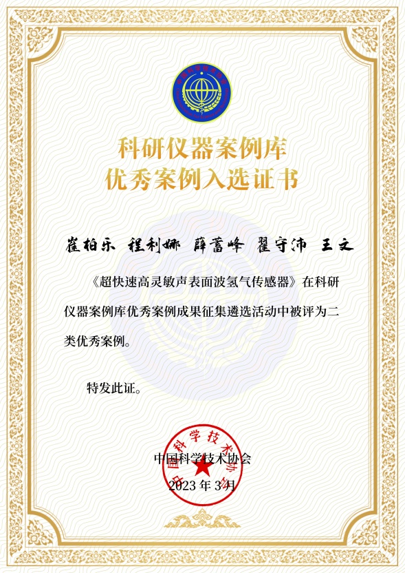 超快速高灵敏声表面波氢气传感器入选中国科协科研仪器优秀案例