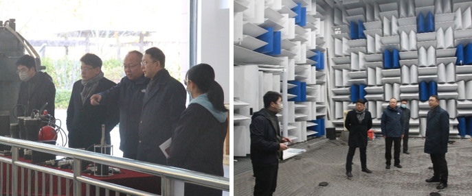 座谈会开始前,张建军一行实地考察了水声学和空气声学公共研发服务平台。