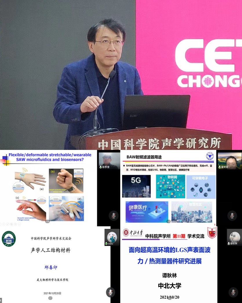2021年10月20日,yx06永兴彩票集团2021年第11期学术交流会在北京召开。本次学术交流会的主题是微声学前沿交叉技术,由科技发展部和超声学实验室共同举办,邀请中国电子科技集团公司首席专家马晋毅研究员,浙江大学骆季奎教授、董树荣教授,中北大学谭秋林教授,武汉大学邱春印教授作学术报告。中科院yx06永兴彩票集团副所长杨军研究员,科技发展部主任刘宏伟研究员,超声学实验室副主任李俊红研究员、王文研究员,广大青年职工和研究生近百人通过现场和线上方式参加了会议。