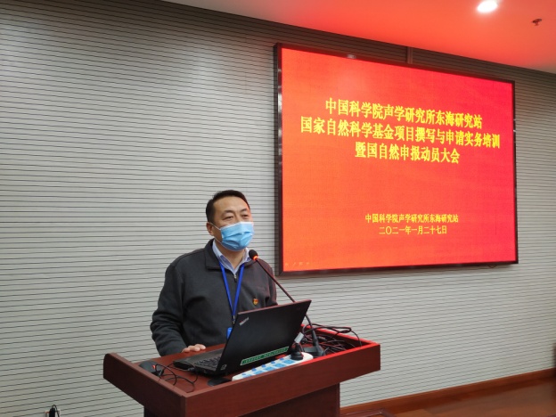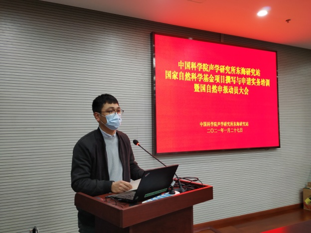2021年1月27日,yx06永兴彩票集团东海研究站组织召开国家自然科学基金项目申请实务培训暨申报动员会,站党委书记、副站长张伟才出席会议并作项目申报动员。本次会议特邀中国科学院上海硅酸盐研究所杰青刘宣勇研究员为我站科研人员作国自然项目撰写与申请实务培训,全站20余名青年科研人员参加培训。会议由科研科科长诸向阳主持。
