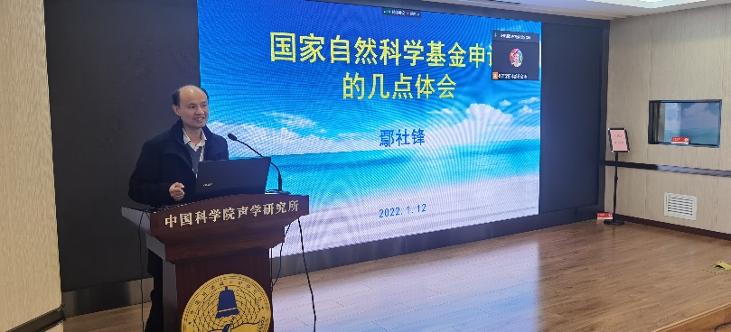 鄢社锋作《国家自然科学基金申请的几点体会》的报告。对国家自然科学基金的整体结构进行了深入浅出的介绍,针对基金项目的资助导向、评审过程、评议要点、申请书写作技巧等要点分享了经验。
