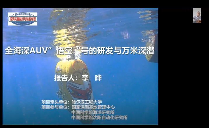 李晔作《全海深(11000米)AUV研究进展》的报告,报告介绍了深渊科考装备体系的组成和发展以及其对推动我国深海装备相关技术和深渊科学研究的重要意义,并全面、系统地介绍了全海深(11000米)AUV各项关键技术的研究进展,展示了“悟空号”在万米海沟的科学试验和实地考察中发挥的重要作用。