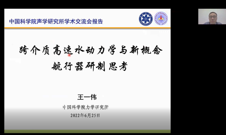 王一伟作《跨介质高速水动力学与新概念航行器研制思考》的报告,报告首先介绍了跨介质航行器的最新进展,详细阐释了航行器穿越水气自由面过程产生的空化现象以及航行器与自由面相互作用等诸多复杂基础问题,并针对出水、近自由面航行、入水等典型工况,分析介绍了流动条件、主动流动控制等机理问题,最后展望了新概念航行器技术的未来研究思路。