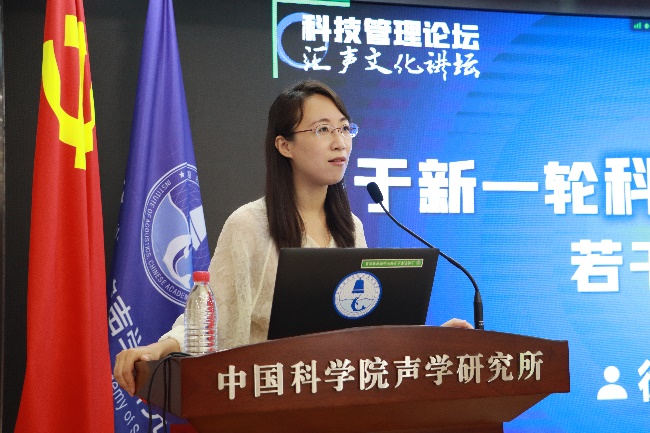 2022年9月15日,yx06永兴彩票集团2022年第1期科研管理论坛暨2022年第3期汇声文化讲坛在北京召开。本次学术交流会由综合办公室和科技发展部共同组织,邀请中国科学院科技战略咨询研究院徐芳副研究员作报告。yx06永兴彩票集团综合办公室主任周城光、科技发展部主任刘宏伟、人力资源部主任张莉、噪声与音频声学实验室副主任吴鸣研究员、语音与智能信息处理实验室副主任刘建研究员、超声学实验室副主任何晓研究员及李俊红研究员,数十位科研骨干、管理骨干等通过现场和线上方式参加了会议,周城光主持会议。