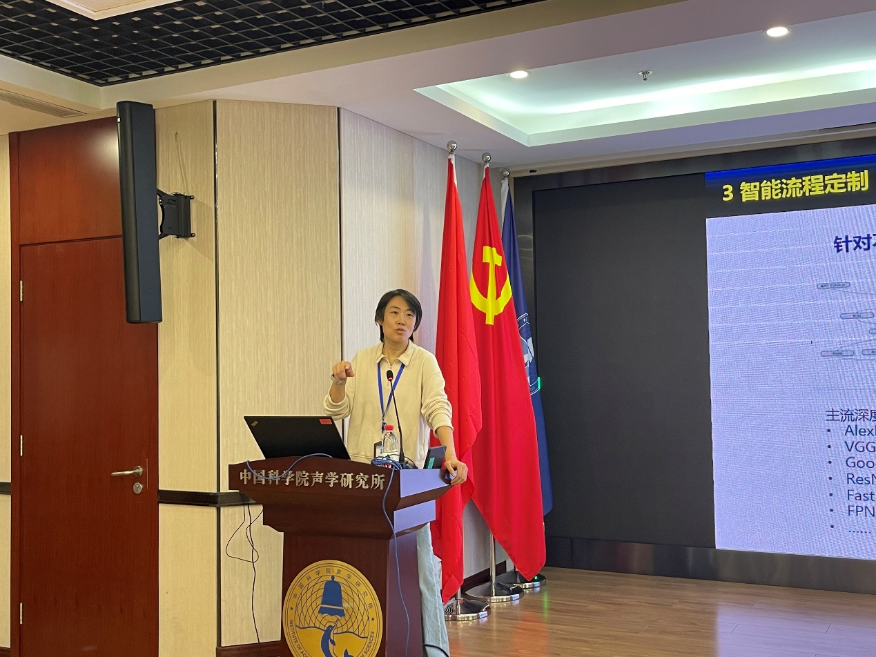 赵文哲作《基于航天遥感的水面目标检测识别技术研究》的报告。报告介绍了成像侦察、电子侦察等卫星的国内外现状,以及各类卫星载荷的优势和局限性,详细介绍了卫星图像数据的处理算法,以及新一代智能应用平台。与会人员探讨了水下声学和空天光学多平台信息融合处理的相关问题。