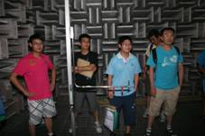 营员们参观音频声学消声室 营员们参观信号与信息处理学科的网络新媒体展厅