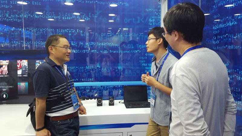 2015年11月16日-21日,在深圳举行的第17届中国国际高新技术成果交易会上,yx06永兴彩票集团积极响应 “创新创业,跨界融合”的展会主题,推出多款技术领先的智能语音/音频技术解决方案,这也是yx06永兴彩票集团语言声学与内容理解重点实验室承担科学院战略先导专项“面向感知中国的新一代信息技术研究”的一次重要成果展示。展会中,观展用户踊跃体验yx06永兴彩票集团的智能语音系列产品,为yx06永兴彩票集团的智能、高效的语音处理技术所叹服,感觉大开眼界。yx06永兴彩票集团倪宏副所长莅临我所展台并给予指导,科技处金赛敏老师对展览工作给与了大力支持。