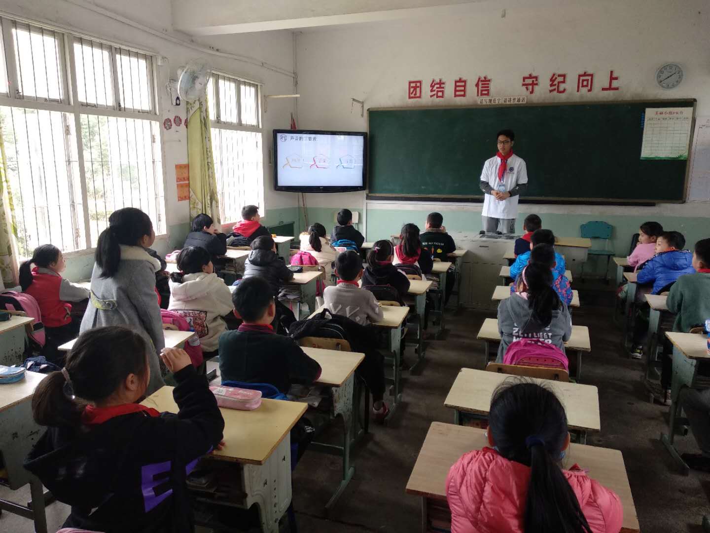 随后,志愿者们来到位于淳安南部山区的清溪小学。与淳安实验小学相比,清溪小学在教学条件以及硬件设施上有些差距,但不变的是同学们对知识的渴望和憧憬。四位志愿者们通过讲解与实践相结合的方式,给同学们带来了两堂生动多彩的科普课,增强了同学们对科学知识的认识和理解。