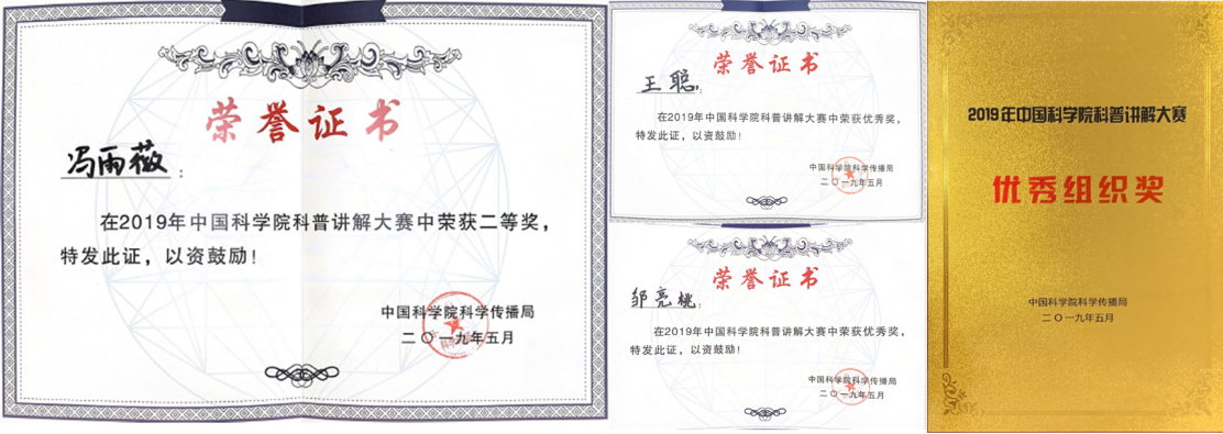 2019年5月6至8日,由中国科学院科学传播局主办的2019年中国科学院科普讲解大赛暨全国科普讲解大赛选拔赛在中国科学院武汉植物园举行。yx06永兴彩票集团科普组经过精心准备,组织了三件作品参赛。经过半决赛、决赛的激烈角逐,《如何让高铁上的噪声“消失”》脱颖而出,荣获中国科学院科普讲解大赛二等奖,并将代表中科院参加2019年全国科普讲解大赛。《轨道医生出诊记》和《如何让声表面波为我所用》荣获优秀奖,yx06永兴彩票集团获大赛优秀组织奖。