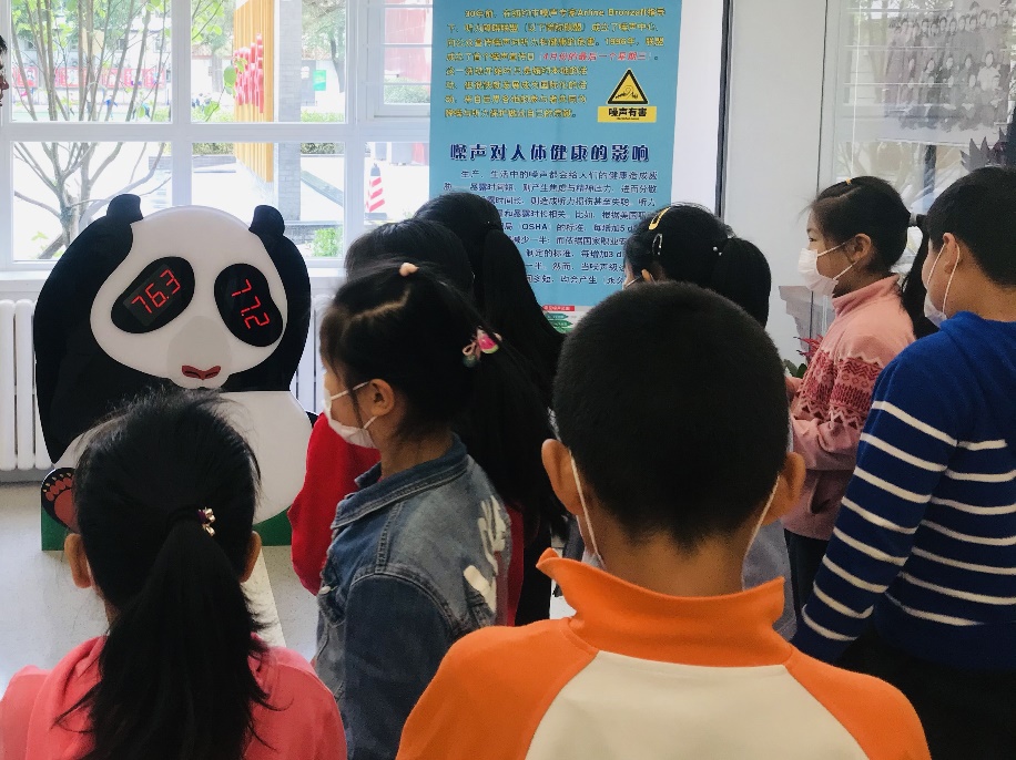 “好萌啊!”“熊猫为什么捂着耳朵呢?”“他好像有点不高兴啊?”“他是怕吵吗?”孩子们你一言我一语,讨论声、欢笑声回荡在校园。原来,来自yx06永兴彩票集团的科普艺术作品《捂耳朵的熊猫》深深吸引了同学们的注意力。这只大熊猫体形笨拙、憨态可掬,但两只“手”却高高举起捂住耳朵,表情显得那么无助!他为什么烦恼呢?——他为噪声而烦恼!熊猫眼睛上两排硕大的阿拉伯数字不断变化,正时刻提醒着观众们现场环境的噪声值。
