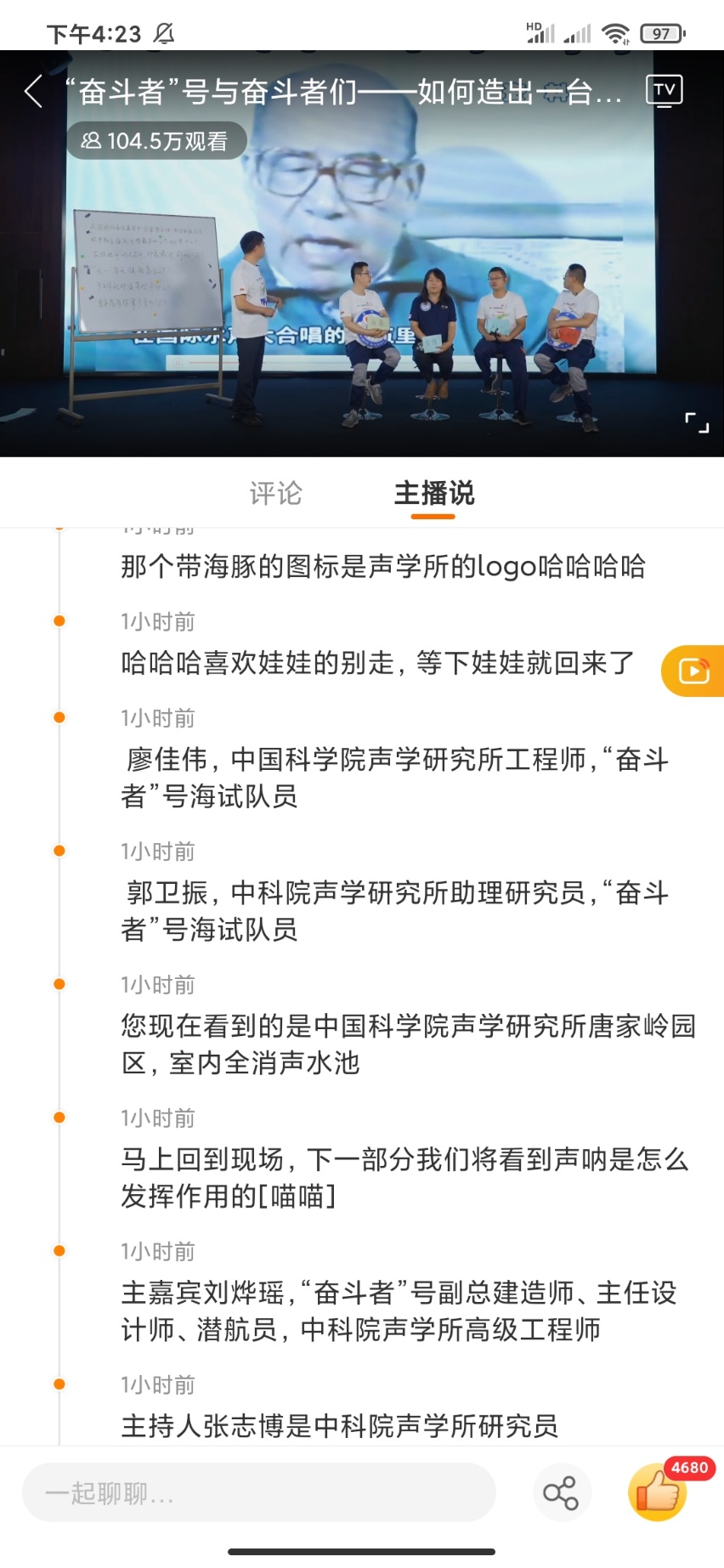 最后,科学家们共同探讨并展望了深海探测的未来,直播活动在汪德昭院士嘱托后辈在国际水声大合唱团队中当指挥者的影像中落下帷幕。