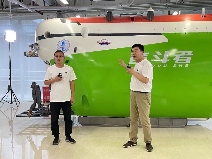 “奋斗者”号万米发声模型参观(左:刘烨瑶,右:徐震)