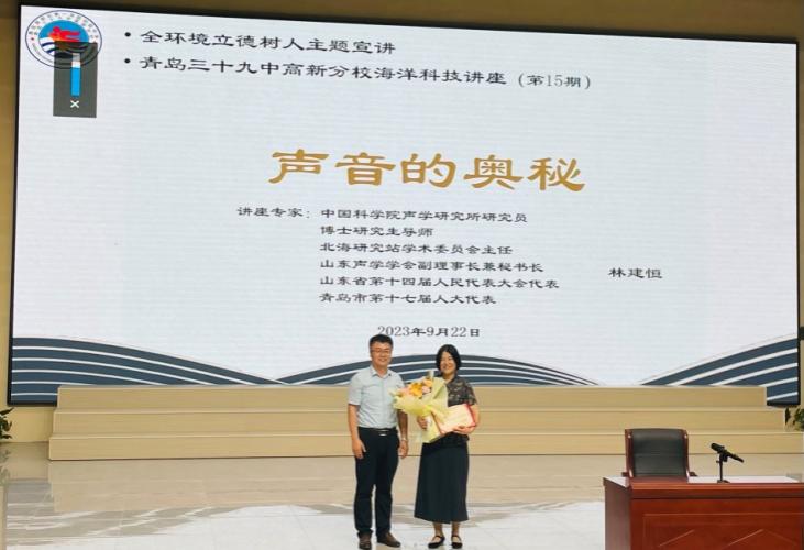 为进一步弘扬科学精神,提升青少年科学素养,2023年9月22日,北海研究站林建恒研究员受邀走进青岛三十九中高新分校,作题为《声音的奥秘》的科普讲座,为同学们开启了一场奇妙的声学之旅。学校200余位师生参加了本次活动。