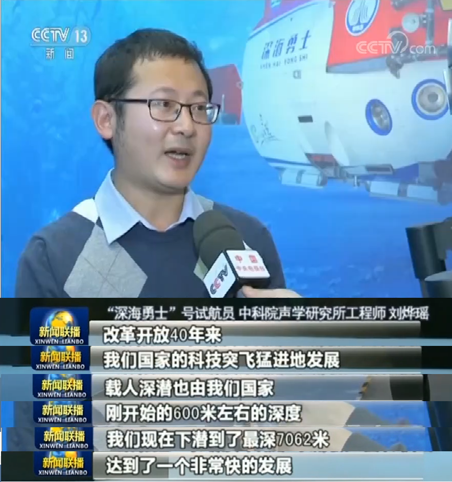 11月22日《新闻联播》在展览现场采访“深海勇士”号试航员刘烨瑶