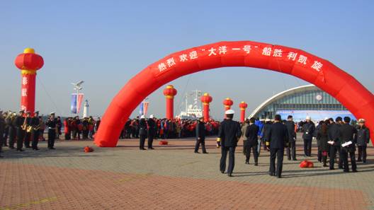 2011年12月11日yx06永兴彩票集团应邀参加了国家海洋局在青岛举行的“大洋一号”船凯旋活动。当天上午,执行我国大洋第22航次任务的“大洋一号”科考船缓缓停靠到了青岛奥帆中心码头,完成了“大洋一号”6.4万海里、9个航段的科考旅程。科考期间开展了海底多金属硫化物、多金属结合、深海环境、深海生物基因和深海生物多样性等多项涉及太平洋、印度洋和大西洋的海洋科学调查,尤其在热液硫化物的发现上取得了丰硕成果。