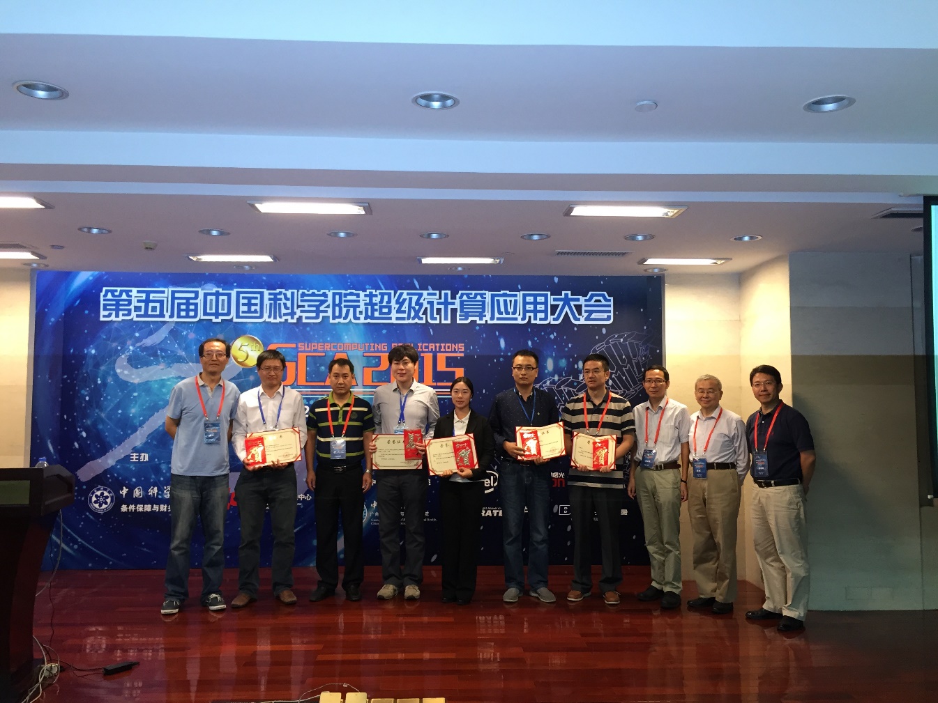 在2015年10月10日于广州召开的第五届中国科学院超级计算应用大会(SCA2015)上,yx06永兴彩票集团超声技术中心林伟军研究员的“深部资源探测大规模软件研究项目”获最佳应用奖。中国科学院超级计算应用奖由中国科学院条件保障与财务局设立,旨在鼓励高性能计算技术在科研领域的应用,促进我院乃至我国高性能计算应用水平的提升。今年为第三届评选,共选出4项最佳应用奖和1项杰出用户奖。超声技术中心苏畅助理研究员代表团队领奖并作报告。