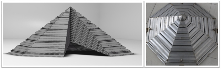 近期,该研究组通过精密的设计,利用周期性互相分隔的钢条构建出水下八棱锥形的三维声学隐身毯。